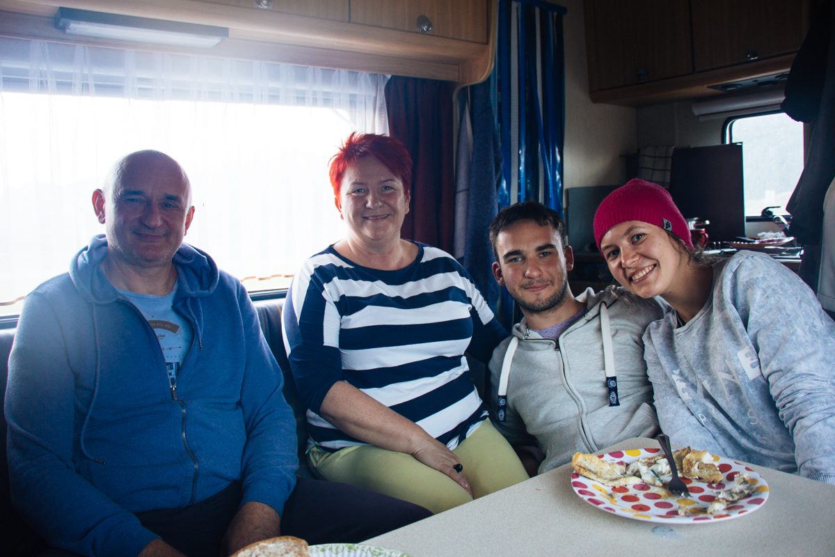 He told me I had to check the fuses. I had to remove some panels and find my way through a maze of wires before I found them and they appeared to be ok. This meant to cable powering the computer had no current anymore so I needed to power it from somewhere else. I thought I would never manage to do this but some Polish traveler had a 12V cable with them. First we tried to connect it from there car which didn’t work and eventually we managed to power it from the fusebox of my car. Now it was possible to charge it. The polish people invited me in their caravan for some fresh caught fish dinner, really nice people. I can even stay with them if I would come to Poland once.