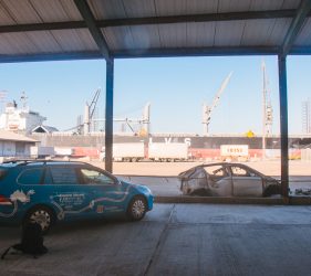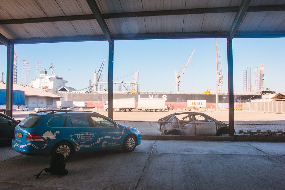It was not until 4pm that I finally got to see the car. I worried a lot about her condition. The car already shipped separately from me and left already on Sunday. The car is very low and I already saw that the ramp to and off the ferry was very steep and the car could not have made this. The batteries are underneath the car and if these hit an object it can get seriously damaged. From the outside she looked great and on the display I couldn’t find any abnormalities about the inside so she seemed to have survived without a scratch. When I received the keys to the car I still couldn’t leave the port. The car needed to go through an X-Ray scanner. Just like when you break you leg but a few sizes bigger. After this I got another stamp and could pick up my exit-pass. When I left the gate it was 5pm. Just when I passed the gate I realized I had left luggage in the office of the shipper. I was not allowed back into the harbor with the car so I needed to walk 2km, walk back with the luggage, pass the custom-checks again and now I could really leave, another hour had passed. This day I lost about 800 dirham, which is around 200 euro. A big loss.