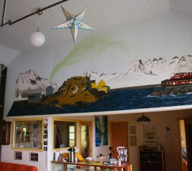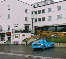 Around 4 the car was fully charged and continued my way. Rob en Threes of the Polarlightcenter had taken care of me very well and gave me some tips about sustainable projects to visit on the way. My next plugger is located in Tromso, more then 400km away which was out of reach. On the map I found Evenskjer, almost halfway down and they had a hotel so this was my best option. This time they couldn’t help me as the owner was not there but fortunately there was a campsite down the road, the Tjeldsundbrua Camping, who could support me. They offered me a place to put my tent on and electricity for the car. This was the first time I would use the tent this trip. Under very heavy rain I managed to put it up and with the rain falling on the roof I felt asleep immediately.